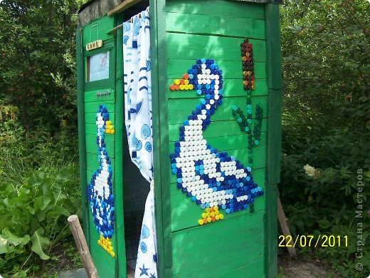 Если вы работаете в кафе, и крышечек у вас скопилось не мало, то можно замахнуться на такое эпическое панно на дачном заборе.